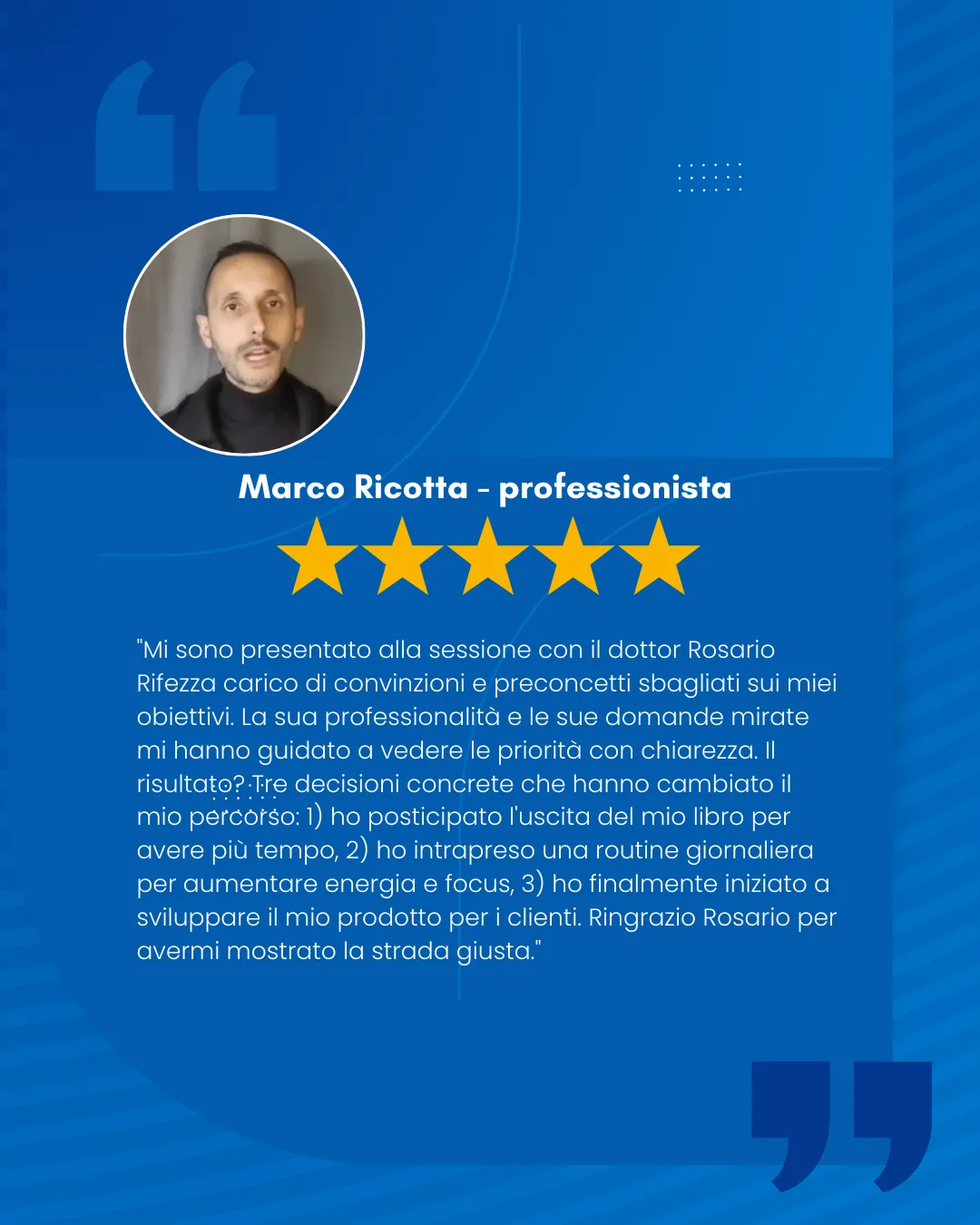 Rosario è un Executive Performance Coach specializzato nel lavoro con imprenditori, manager e professionisti di alto livello che hanno già raggiunto il successo economico ma sentono che qualcosa non va.