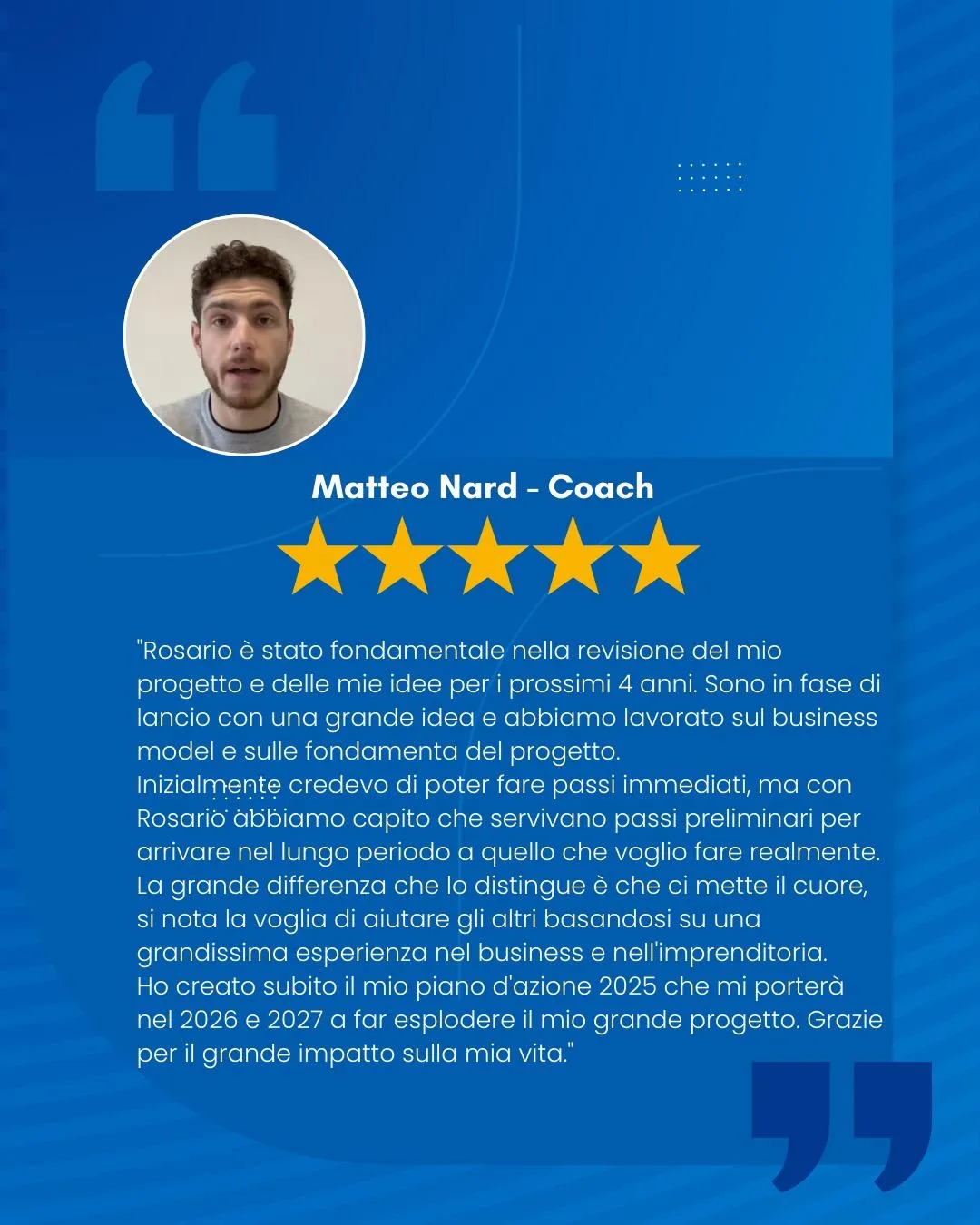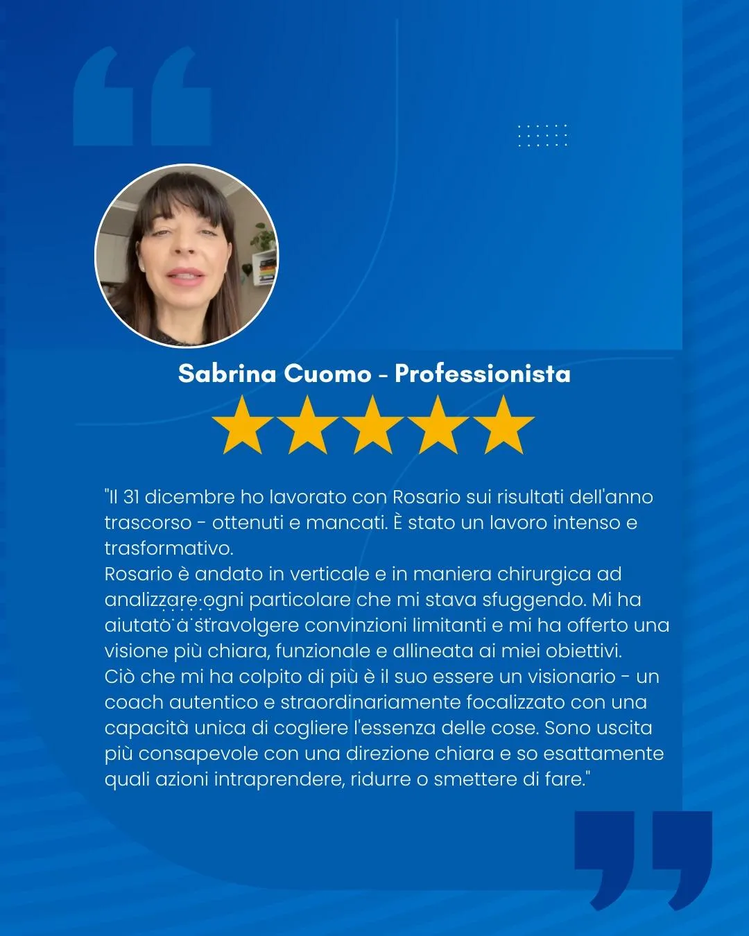Rosario è un Executive Performance Coach specializzato nel lavoro con imprenditori, manager e professionisti di alto livello che hanno già raggiunto il successo economico ma sentono che qualcosa non va.